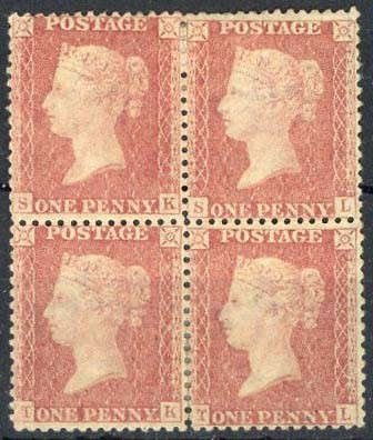 1d. Plate 68: SK-TL, block of four, part original gum, some split and strengthened perfs., fine. S.G. 38/41
