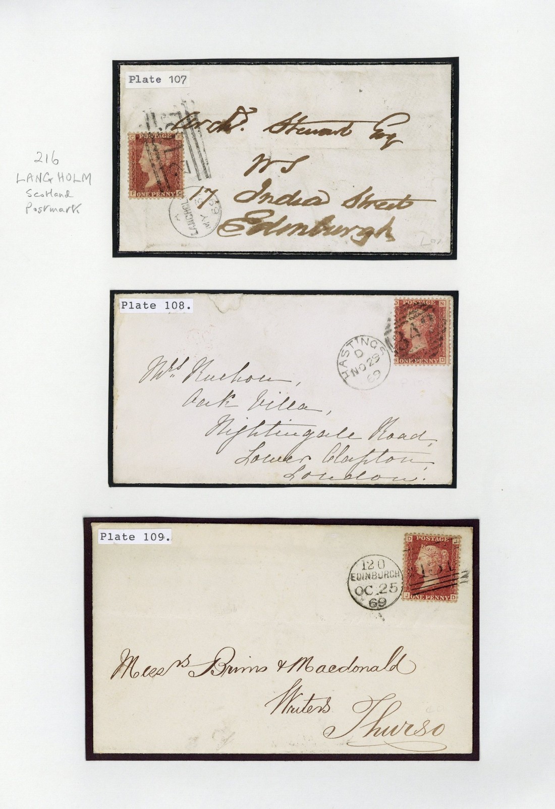 1841-54 line-engraved collection housed in nine albums, contained in a carton, including 1841-53 1d. with over 1,000 plated examples, 2d. (19) 1854-57 perforated 1d. and 2d. with Plated examples, protective underprints/overprints, 1858-79 1d. Plate 225, 2d. set of Plates, Plate 7 block of four, 1870 1½d. (36), cancellations with Brunswick Stars, covers and pieces, etc., mixed condition but a valuable and interesting lot (many thousands)