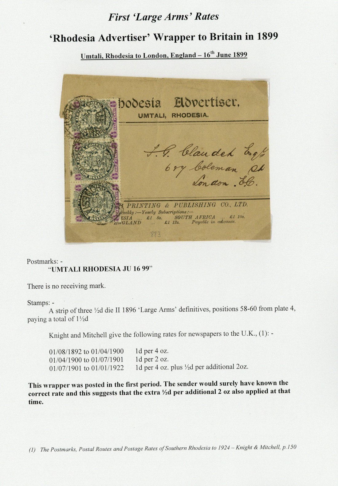 Auction: 14024 - The Philatelic Collector's Series Sale featuring the Award-winning Collection of Province of Otago Postal History formed by Greg Francis, and the Cliff Wheatley Rhodesias