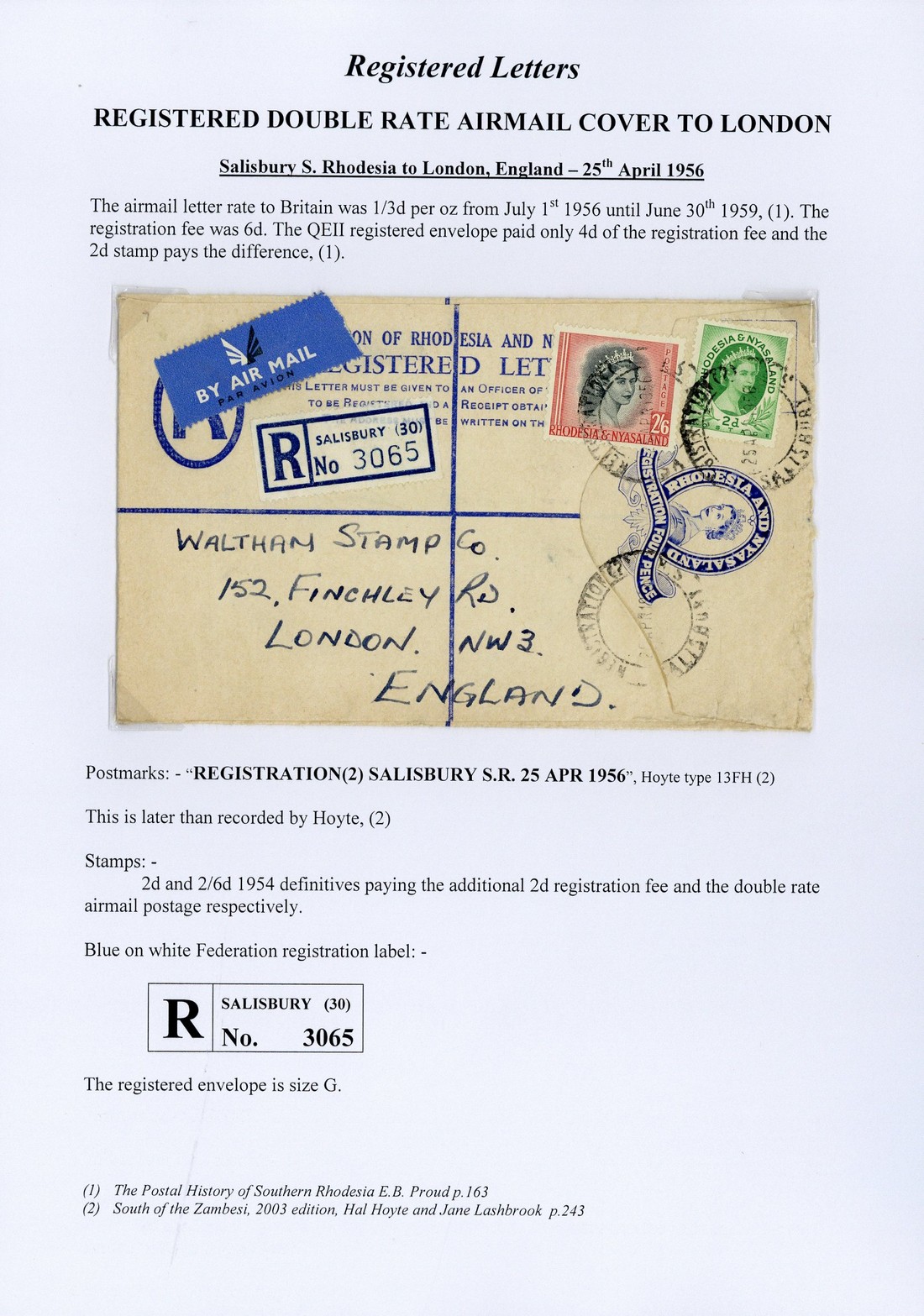 A collection of nearly all non-philatelic covers (160) neatly mounted and well written-up on pages, from a variety of offices with many selected for routes and rates with airmails including 1956 Lusaka-Kariba first flight and return and Central African Airways flights (2), registered mail, Postage Paid in Cash, Postage Paid, Postal Stationery, etc. A fine lot