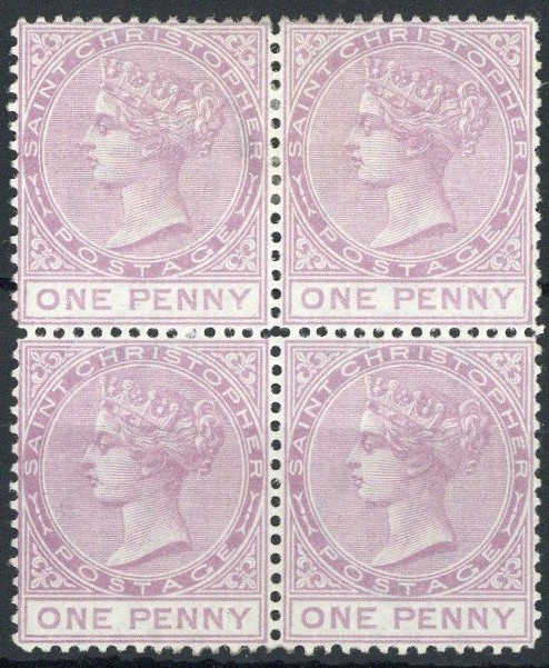 1875 perf. 14, 1d. magenta block of four with part to large part original gum (sweated around hinge remainders); upper left stamp with a small thin, fine appearance and a scarce multiple. S.G. 6, £320+
