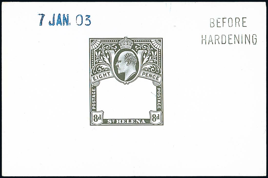 8d. frame die proof in black on glazed card (92x60mm.), marked "before hardening" and dated "7 jan. 03"; very fine. Photo