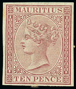 — 10d. maroon imperforate plate proof on watermarked paper, no gum, fine. S.G. 67. Photo