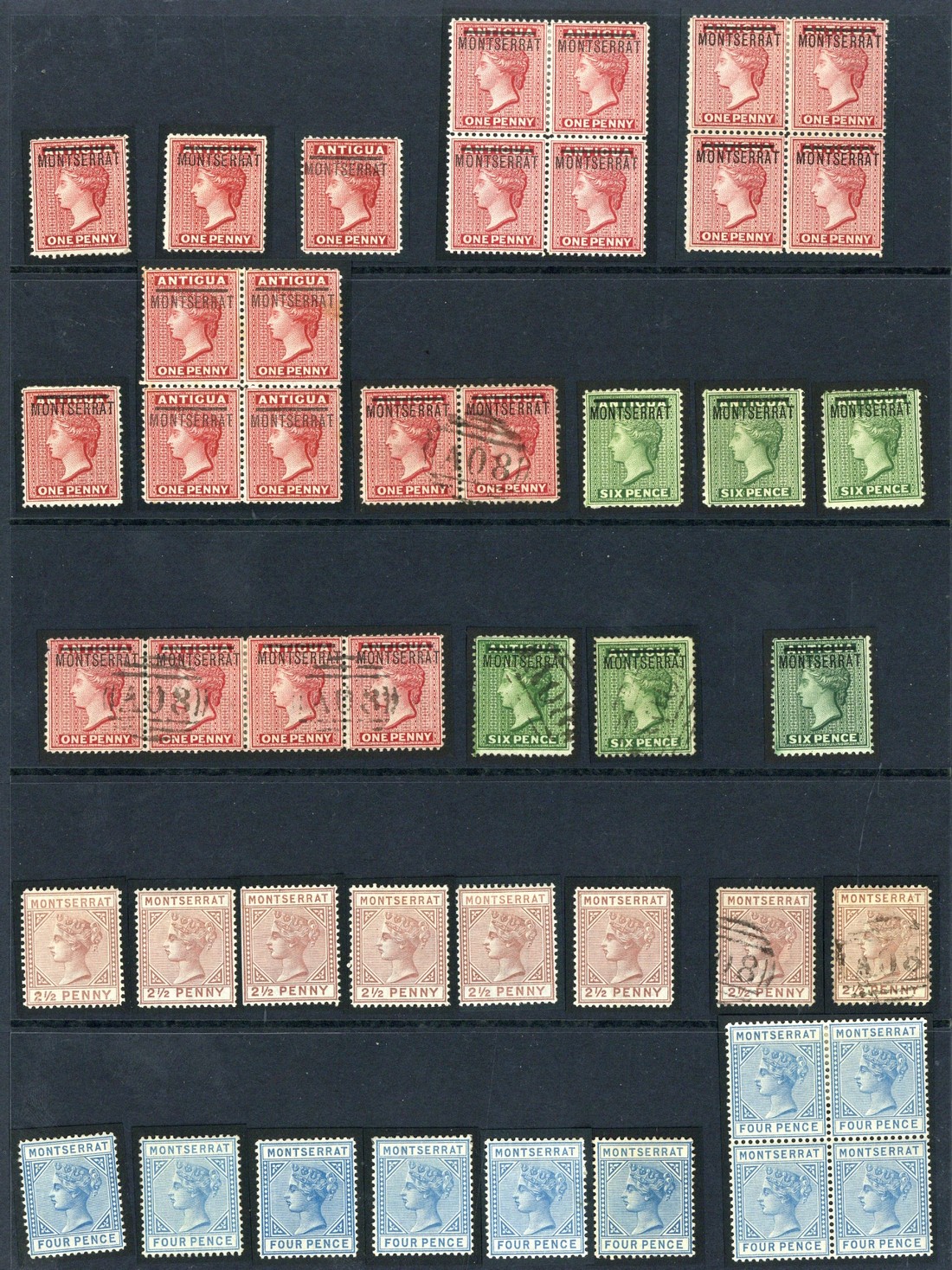 1876-83 CC 1d. mint (16 including three blocks of four) and used strip of four and a pair, 6d. green mint (3) and used (2), and 6d. blue-green mint, 1880 CC 2½d. mint (6) and used (2), 4d. mint (10 including a block of four) and used, 1883 CA perf 12 1d. (6 including a block of four) and 1884-85 ½d. mint (8 including a block of four), 1d. mint (12 including a block of four) and used (2), 2½d. red-brown mint (4 including a pair with plate number) and used (6 including a pair), 2½d. ultramarine mint (3), 4d. blue mint (2) and used (4) and 4d. mauve mint (3) and used (4); condition a little mixed though many are fine. S.G. 1-12