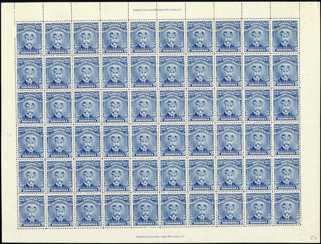2½d. deep blue perf. 15 complete sheet of sixty (10x6), numbered "6", with imprints at top and at foot, fresh mint with nearly all remaining unmounted; three small thins in margins, otherwise fine. A scarce multiple. S.G. 207, £1,320+