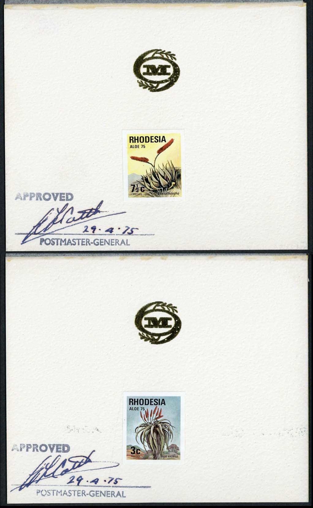 1975 Succulent Congress 3c. and 7½c. imperforate proofs, both affixed to cards signed as approved by the Postmaster-General and mounted in Mardon presentation folders