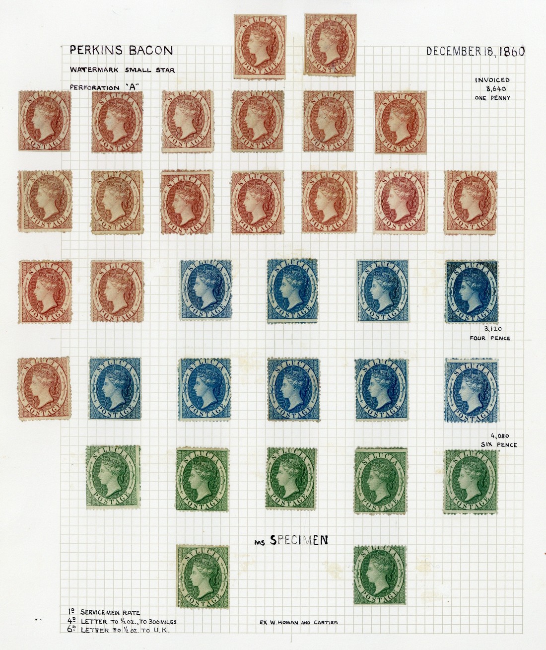1860 (Dec.) wmk Small Star, unused/mint range comprising (1d.) rose-red (18), (4d.) blue (9) and (6d.) green (7), some shade variations and a few with gum; condition mixed. S.G. 1-3, £5900+