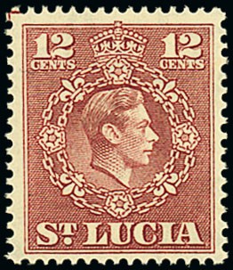 1949-50 12c. claret, perf. 14½ x 14, unmounted mint, fine and scarce. S.G. 153a, £800. Photo