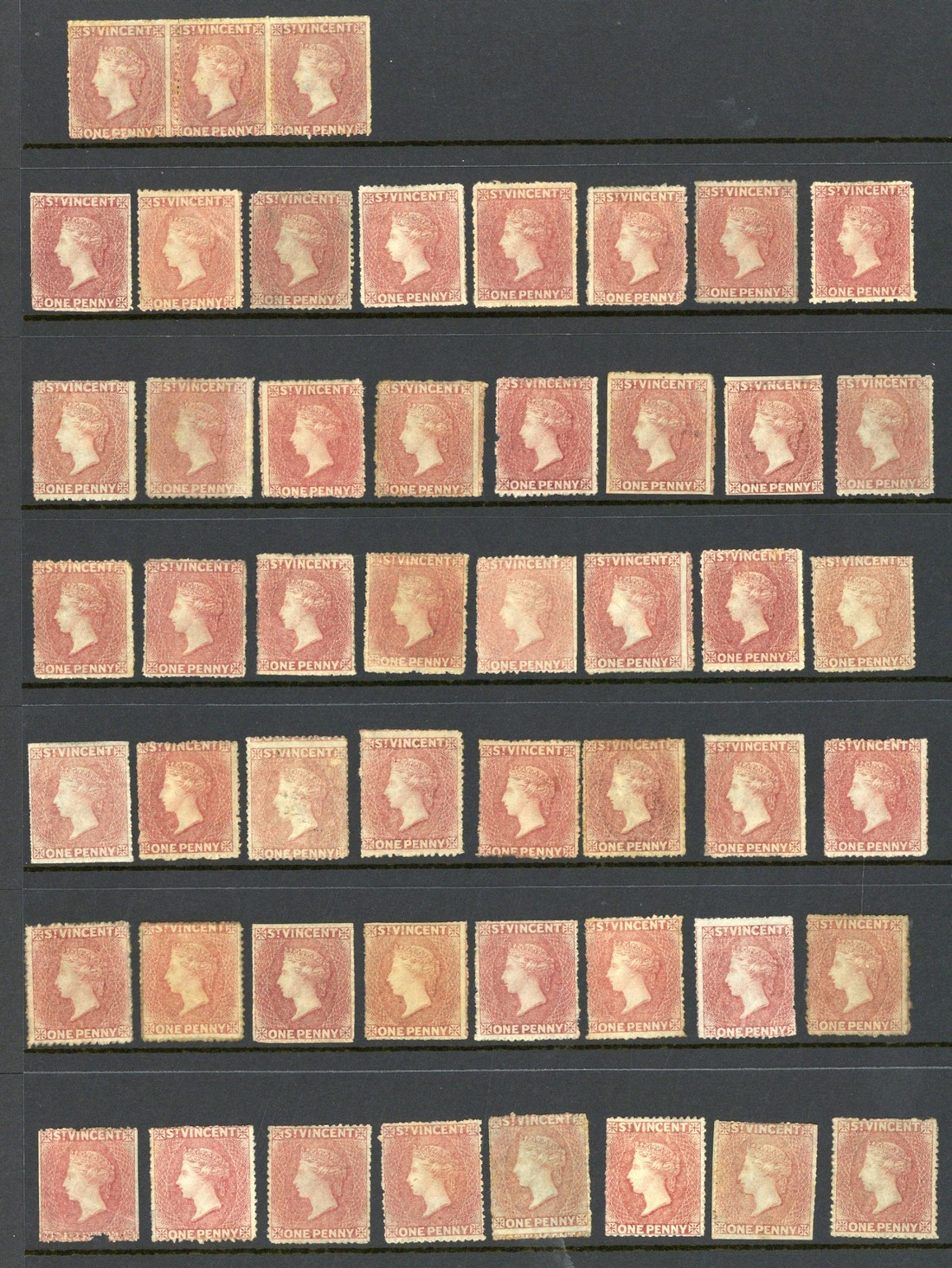 1861 no watermark, rough to intermediate perf 14 to 16, 1d. rose-red unused/mint range comprising a strip of three, a pair and ninety-one singles, a good range of slightly differing shades, a few with original gum and three showing an additional row of vertical perforations through the centre of the stamp; condition very mixed. S.G. 1, £4600+