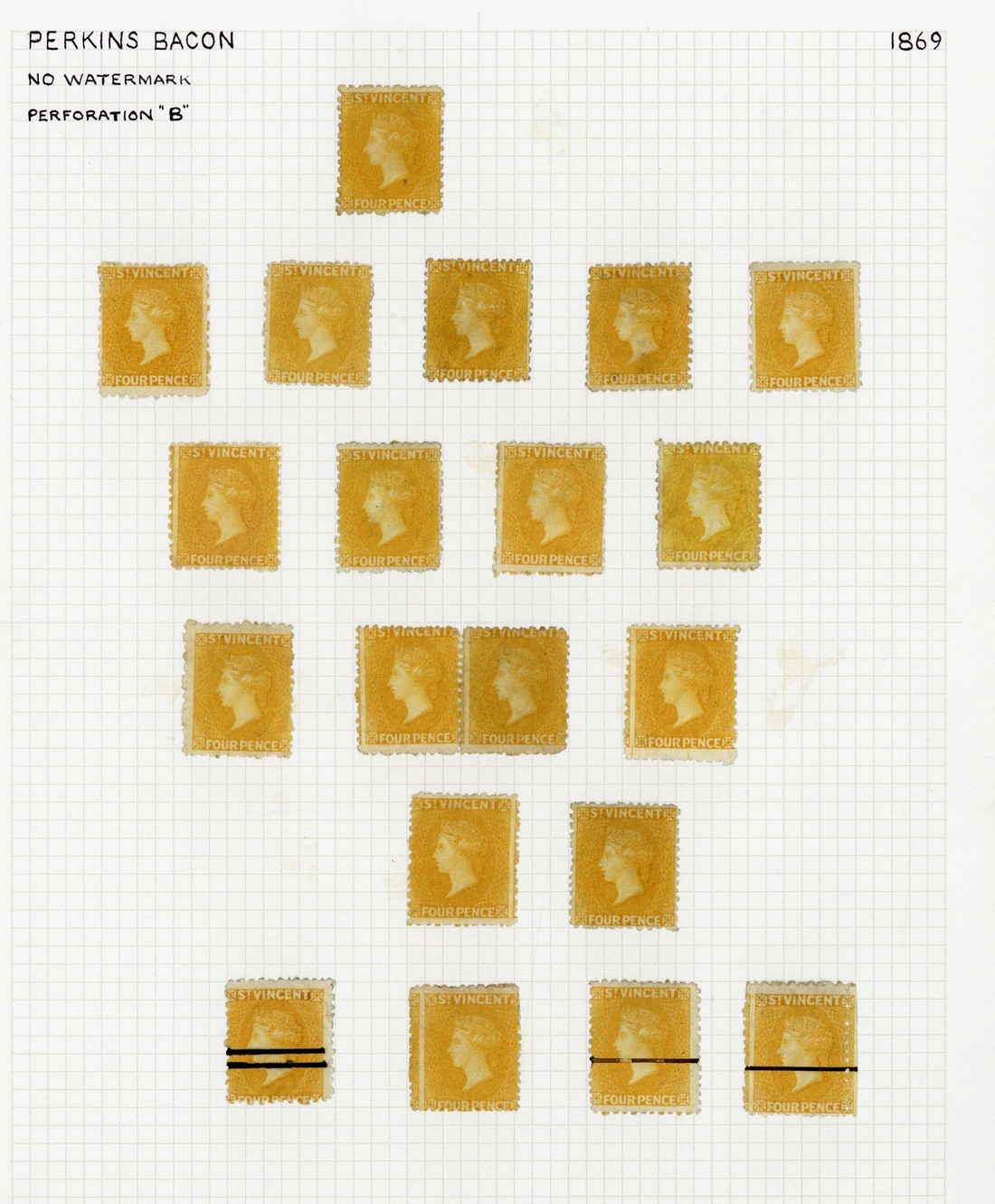 1869 no watermark, perf 11 to 12½ 4d. yellow mint/unused range (20), a few with original gum, three crossed by manuscript ink line(s), condition rather mixed. S.G. 12, £7000