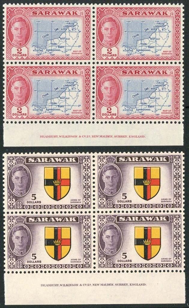 1950 1c. to $5 set of fifteen in imprint blocks of four, fine unmounted mint. S.G. 171-185