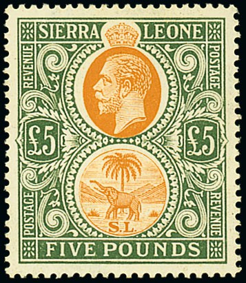 1921-27 Script £5 orange and green, fresh and fine mint. S.G. 148, £2750. Photo