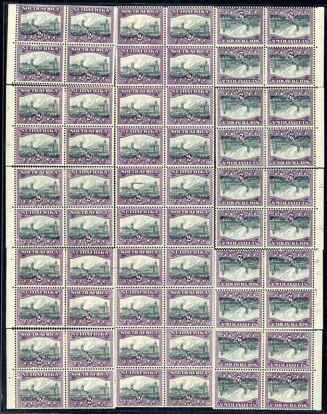 ½d. booklet panes (15) being a reconstruction of the top half of the sheet, 1d. similar reconstruction from the bottom half of the sheet, and 2d. similar reconstruction from the top half of the sheet, one column in each with inverted watermarks, mint and generally fine for these. A rare trio