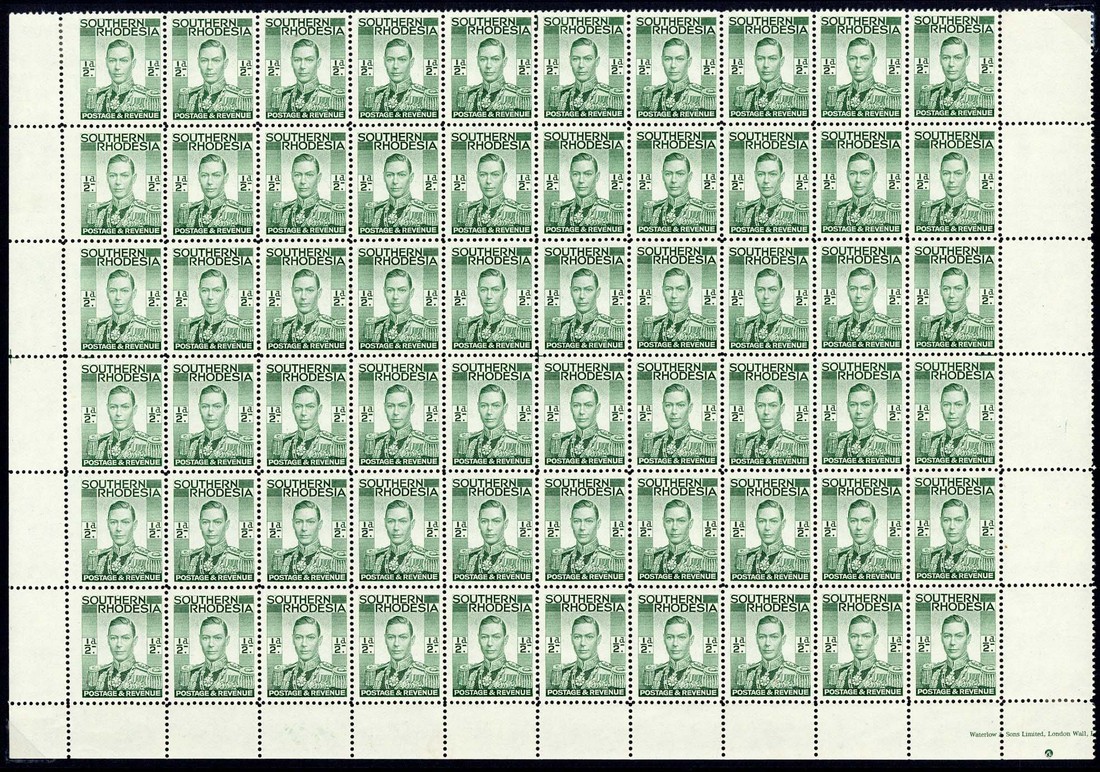 ½d. green lower left pane of sixty (10x6 less the top margin) with part imprint, the left-hand vertical row of vertical perfs. misplaced to left giving the stamps a "wing-margin" effect, fresh mint with most unmounted; a few trivial handling creases clear of the variety column