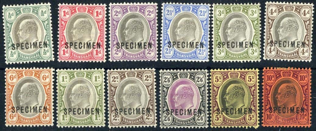 1902 CA ½d. to 10/- set of twelve overprinted "specimen", fine mounted mint. S.G. 244s-255s, £200