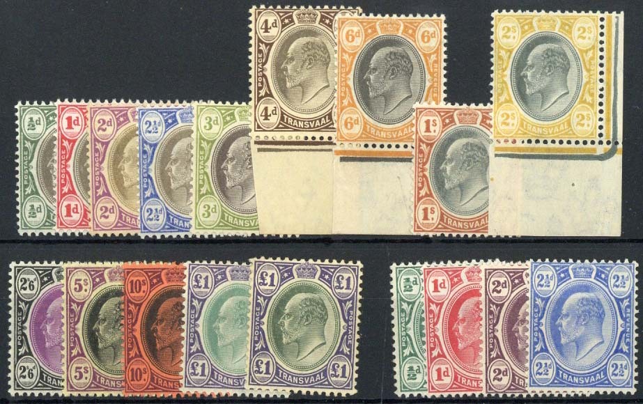 1904-09 ½d. to £1 (both) and 1905-09 set of four, fresh unmounted mint, fine and scarce. S.G. 260-276 group SACC Cat. R30, 865 for unmounted