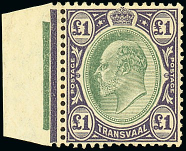 — £1 green and violet on chalk-surfaced paper, marginal from the left of the sheet, fine unmounted mint; very fine. S.G. 272a, £300. SACC Cat. R11000 for unmounted. Photo