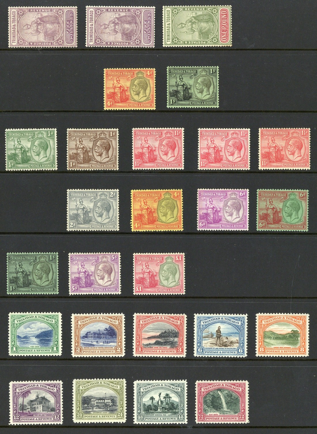 1913-35 mint collection on Hagner leaves including 1913-23 MCA ½d. to 1/- with some shades/papers, 1914 Red Cross label, 1921-22 Script ½d. to £1 with both 5/-, 1922-28 to £1, 1935-37 1c. to 72c. and Official Stamps including 1916 ½d. with overprint double; generally fine
