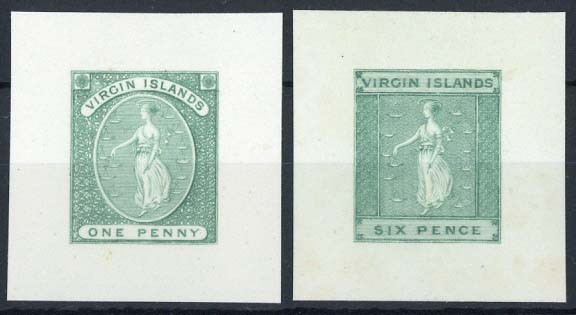 1d. and 6d. in blue-green on separate pieces (both 35x37mm.), fine