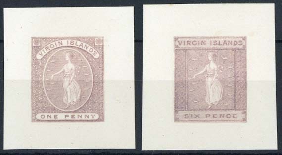 1d. and 6d. in brown-lilac on separate pieces (34x36mm. and 34x38mm.), fine