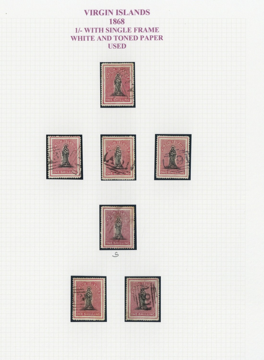 1/- black and rose-carmine on toned paper (3, one with long-tailed "s" - small faults), also 1/- rose-carmine on white paper (4); all used, generally good to fine. Cat. £3350