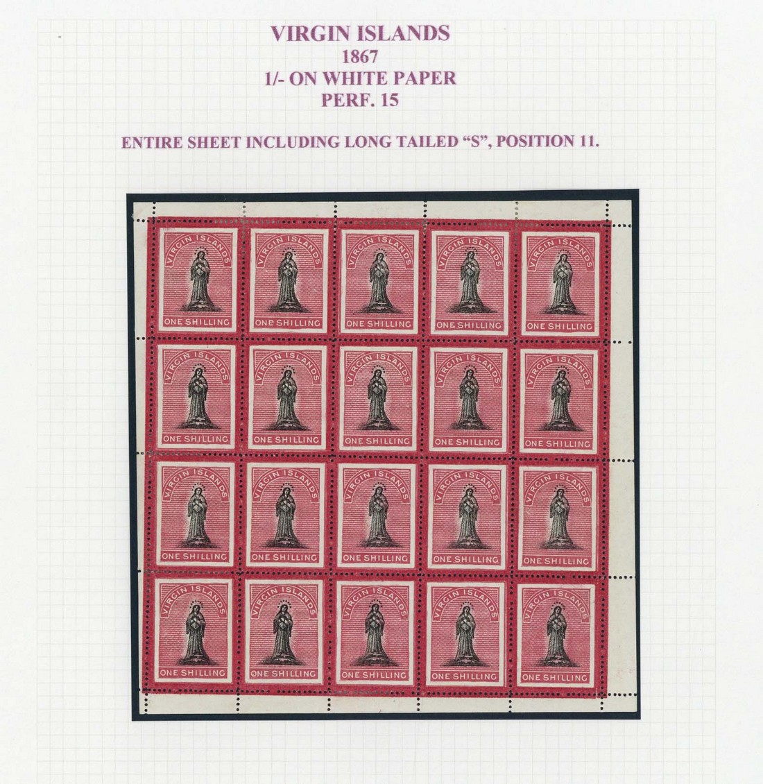 A complete mint sheet of twenty with [11] showing long-tailed "S", a few re-enforced perfs, fine mint. S.G. 18/18a, £2010