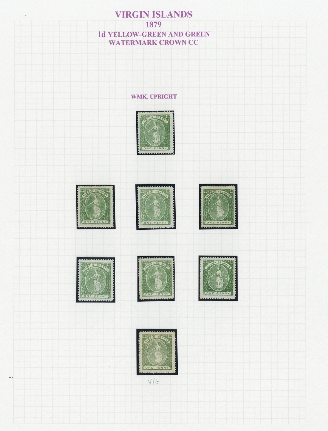 1878 CC 1d. green, various shades including one yellow-green, five with watermark upright, unused with small part or part original gum, generally good to fine. S.G. 22, £840