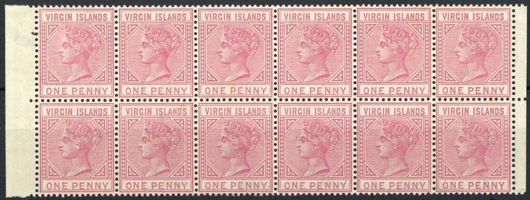 — 1d. pale rose block of twelve (6x2), one with thin otherwise fine mint. S.G. 29, £480