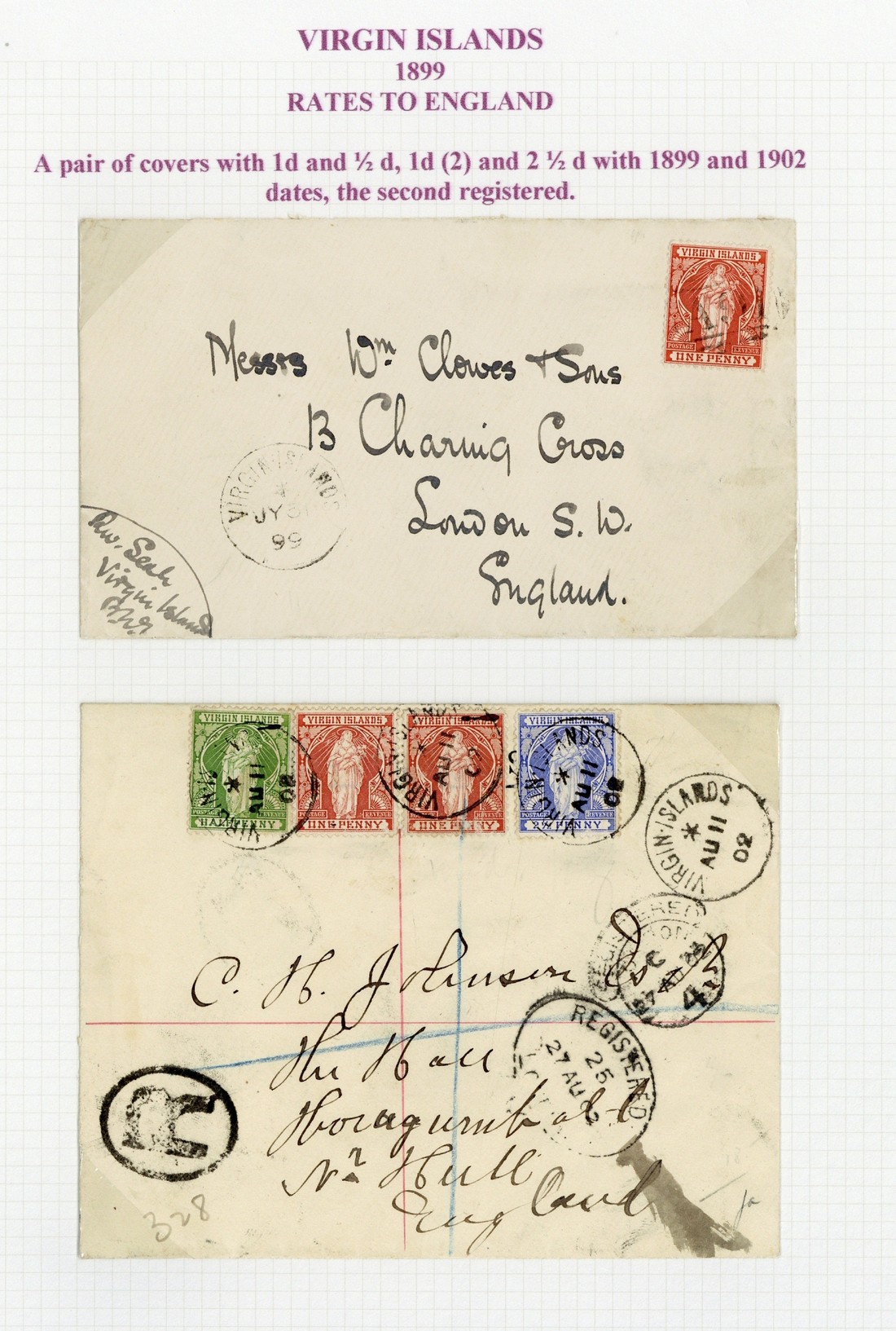 1899 (July) envelope to London bearing 1d. cancelled "A91", 1901 (11 Mar.) and (6 May) envelopes registered to England bearing 7d. and 4d. respectively tied by "A91" obliterator and 1902 (11 Aug.) envelope registered to England bearing ½d., 1d. (2) and 2½d. tied by c.d.s. A good group