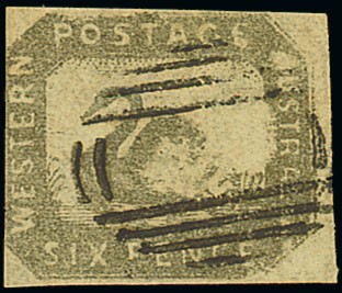 1857-59 6d. grey-black showing most of swan missing transfer error, good margins on three sides, touched at left, sound used. S.G. 19, £550. Photo