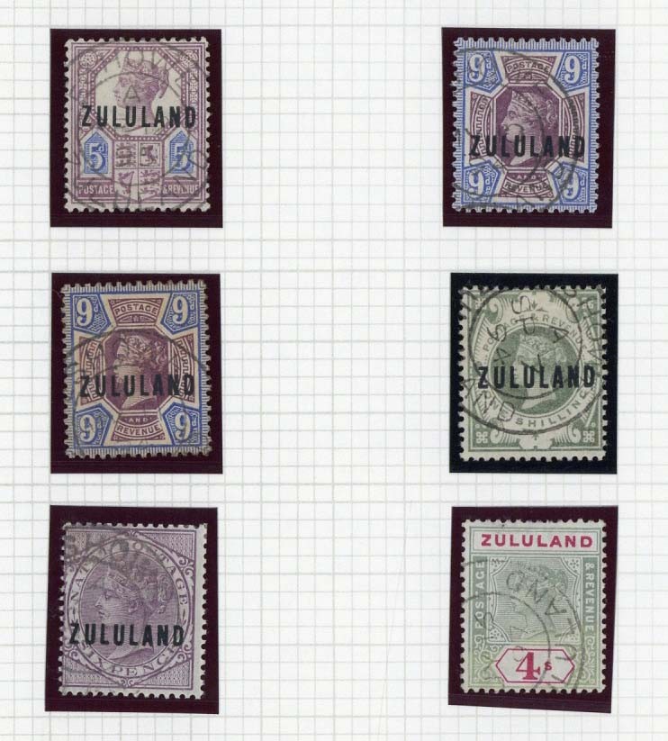 1888-93 5d., 9d. (2) and 1/-, 1893 on Natal 6d. and 1894 4/-, used; one 9d. soiled and the 4/0 a little faded, the others fine. Cat. £660