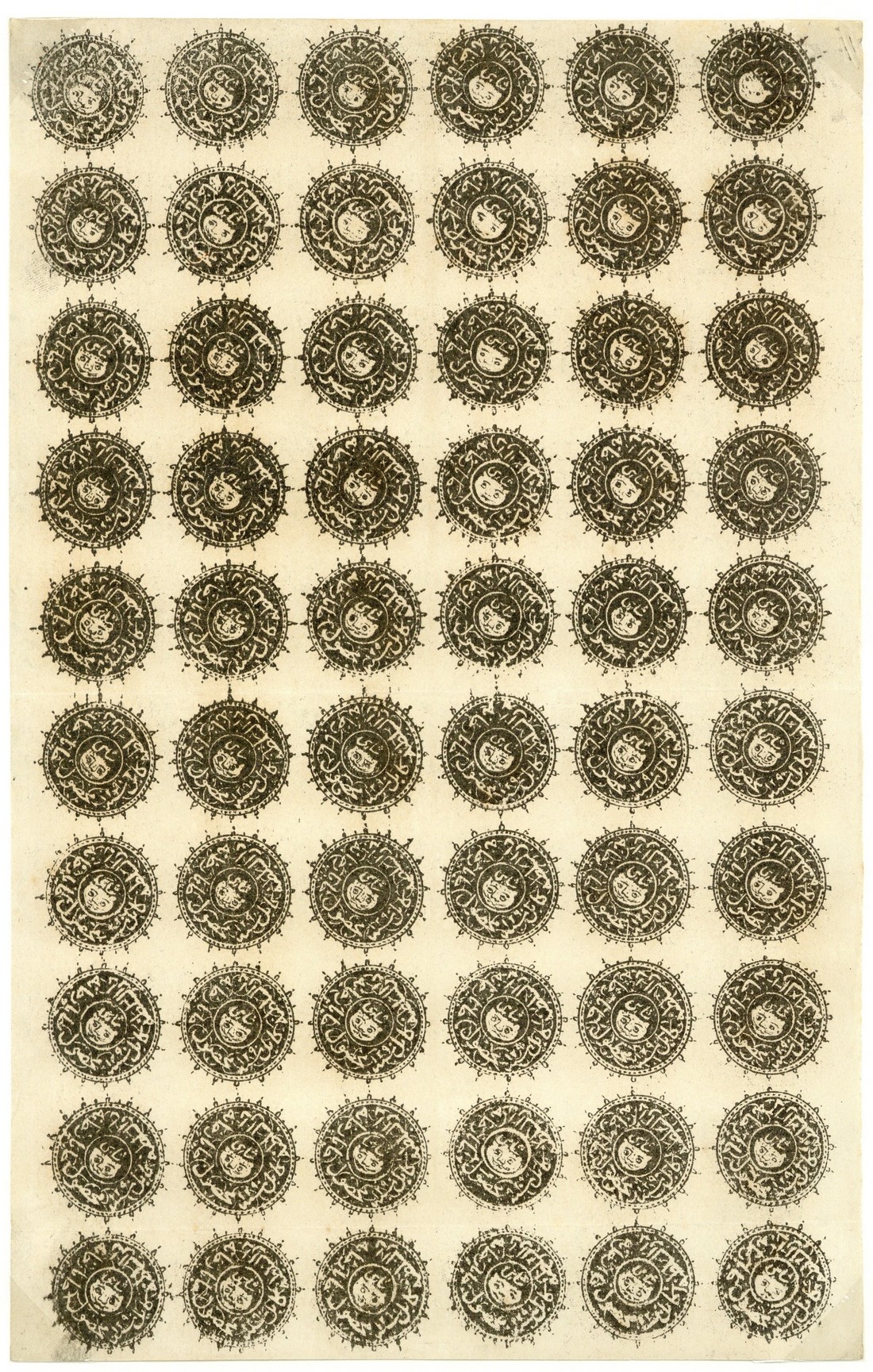 Shahi black, complete unused sheet of sixty types on paper with "leschalles" watermark (reversed), horizontal fold; fine. S.G. 13