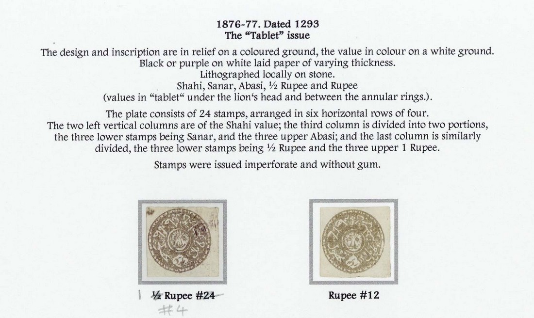 Black ½ rupee [16] unused, rupee [8] with bite, purple ½ rupee [20 and 24], 1 rupee [4 and 12], chiefly unused, good to fine. S.G. 27-28, 35, 36-37