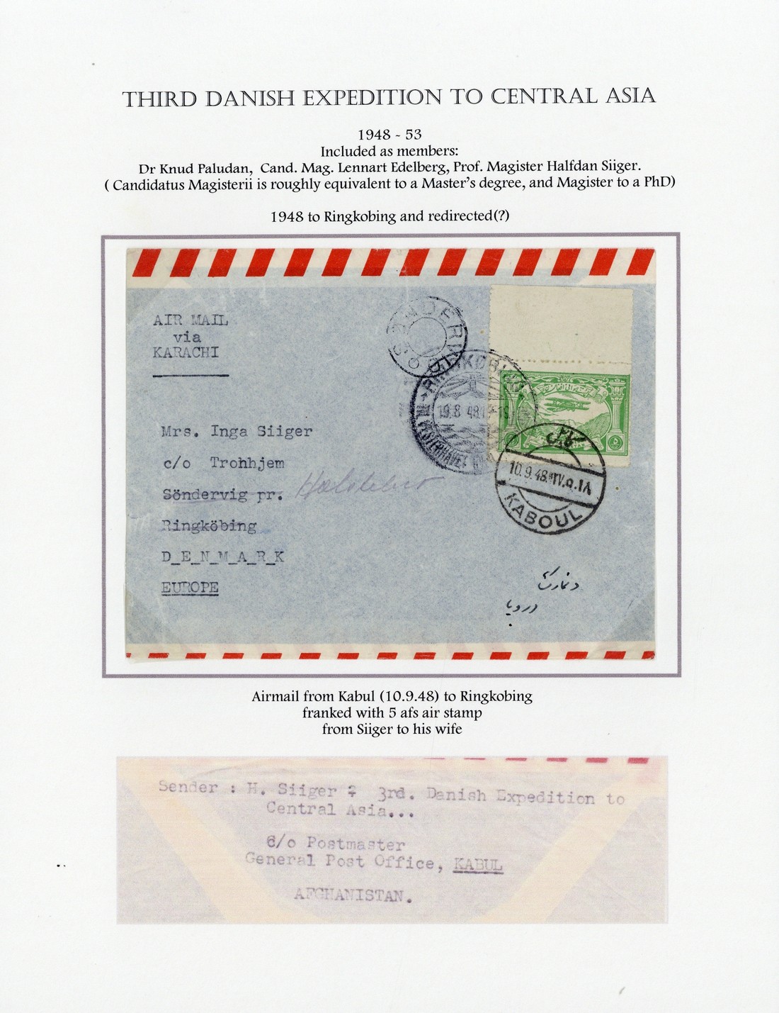 1938-49 Third Danish Expedition of Central Asia, six envelopes, comprising two from Kaboul to Denmark, two from Denmark to Kaboul and one each from Oslo and Simla to Kaboul, mostly addressed to Lennart Edelberg, fine