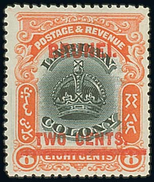 2c. on 8c. black and vermilion showing line through "B", perfs a little trimmed at right otherwise fine mint. Rare. S.G. 13c, £650. Photo