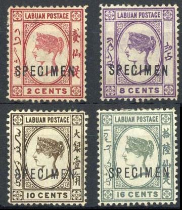 1885-86 CA 2c., 8c., 10c. and 16c., each overprinted "specimen", mounted mint. S.G. 30s-33s, £550