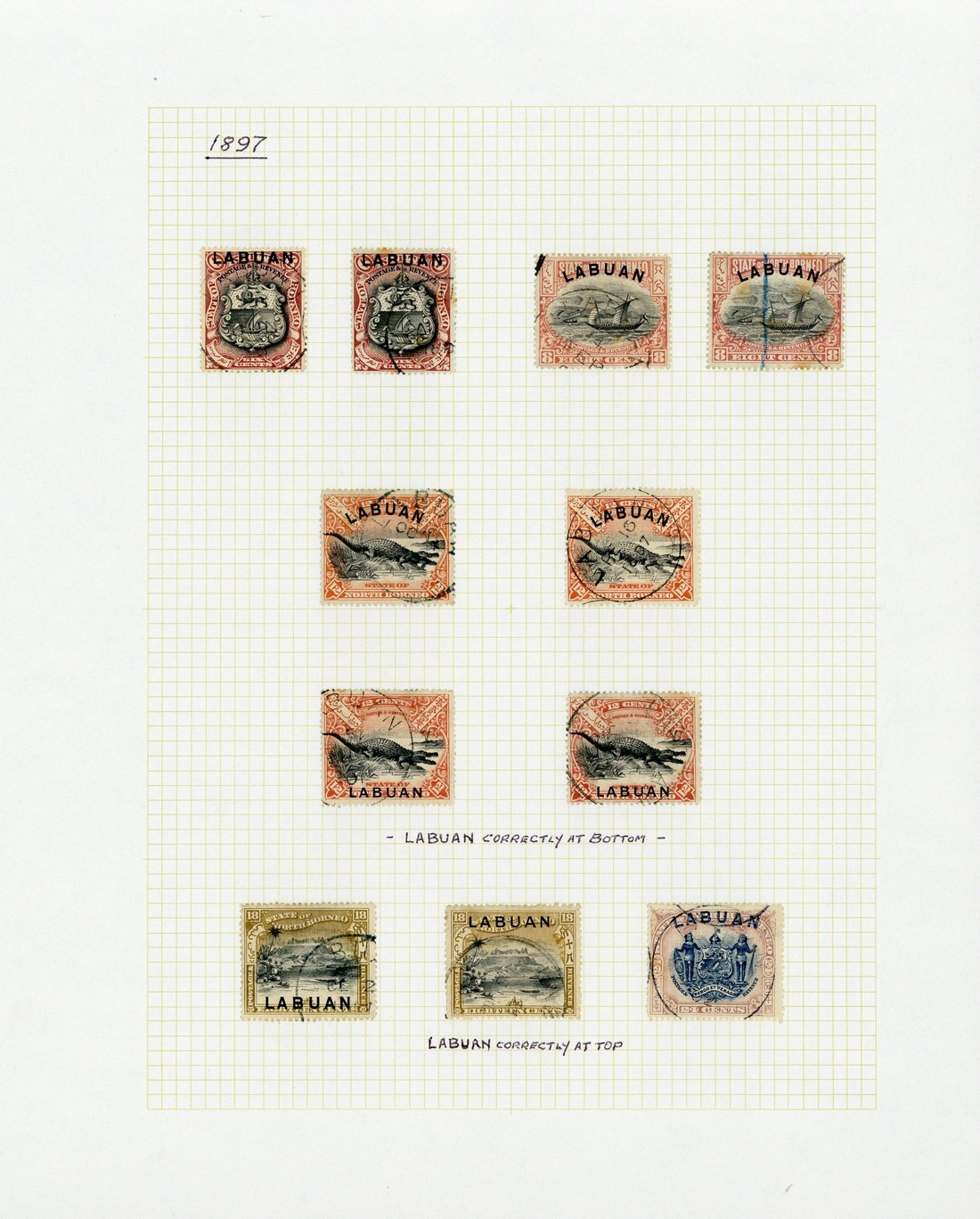 — 1c. (15 including a block of six), 2c. (6), 3c. (6), 5c. (2), 6c. (2), 8c. (2), 12c. (2), 18c. and 24c., and colour changes 12c. (2) and 18c. with "labuan" at top, all used, most fine. S.G. 89-99, £650+