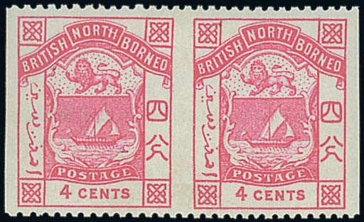 4c. pink horizontal pair, variety imperforate vertically, fresh and fine mint. S.G. 26c, £325. Photo