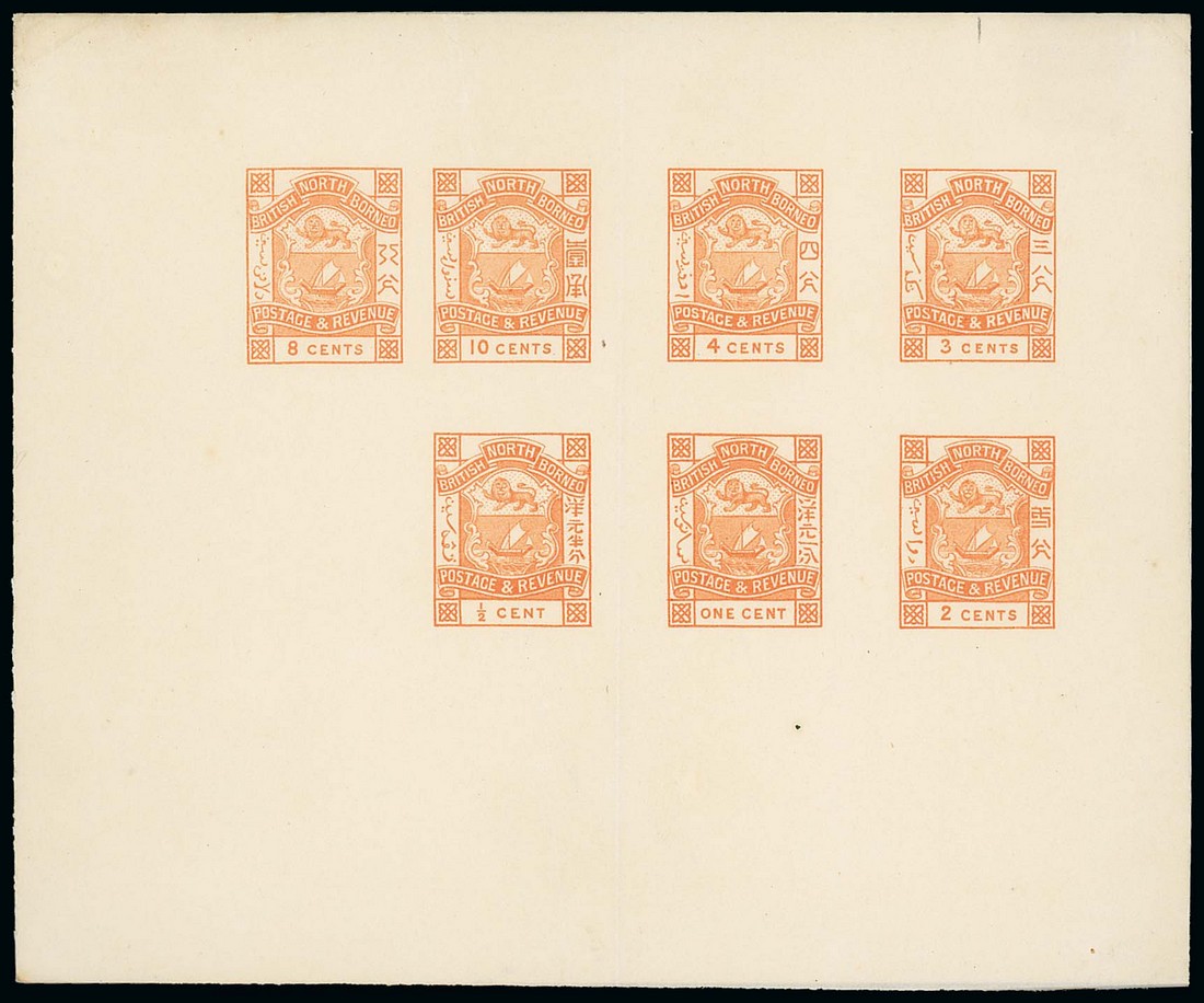 ½c., 1c., 2c., 3c., 4c., 8c. and 10c. lithographed composite sheet in orange-yellow on shiny surfaced paper, fine. Photo