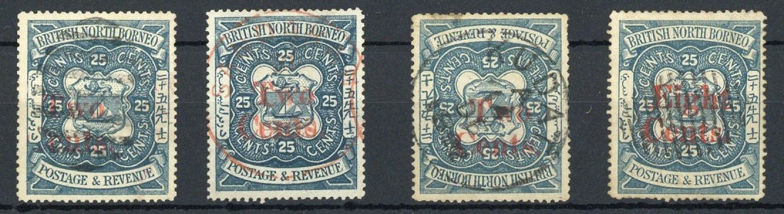 — 2c. on 25c. first printing (3, one with surcharge inverted - small thin), and 8c. on 25c., fine used. S.G. 51, 51a, 52, £760