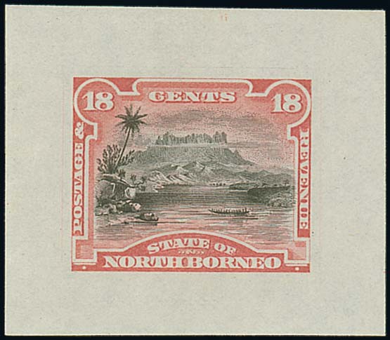 18c. in black and red and showing outer frameline, on wove paper (46x40mm.), fine. Photo