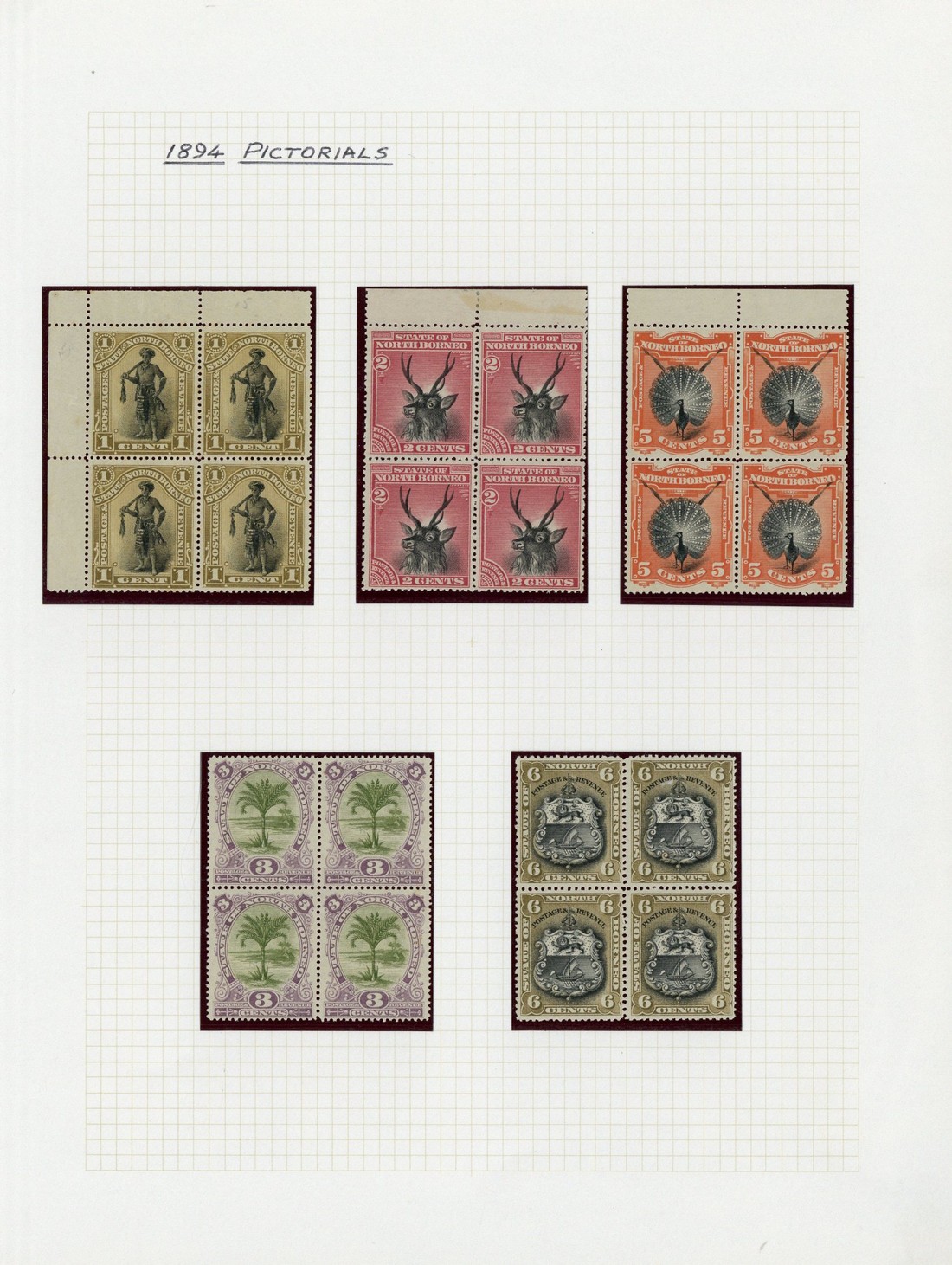 1c. (19 including two blocks of four), 2c. (10 including a block of four), 3c. (9 including a block of four), 5c. (7 including a block of four), 6c. (3), 8c. (4 including a pair), 12c. (4), 18c. (3) and 24c. (3), all mint, mostly fine. S.G. 66-79, £500 approx.