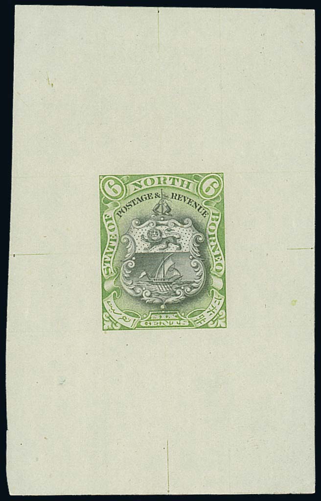 6c. in black and bright green on wove paper (54x85mm.) showing guide lines, fine. Photo