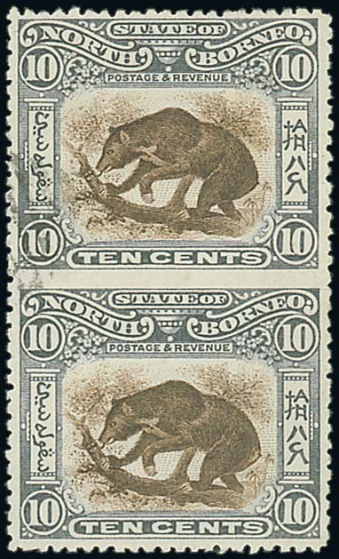 10c. brown and slate-lilac vertical pair, variety imperforate between, fine and lightly cancelled to order. rare. S.G. 104a, £1000. Photo