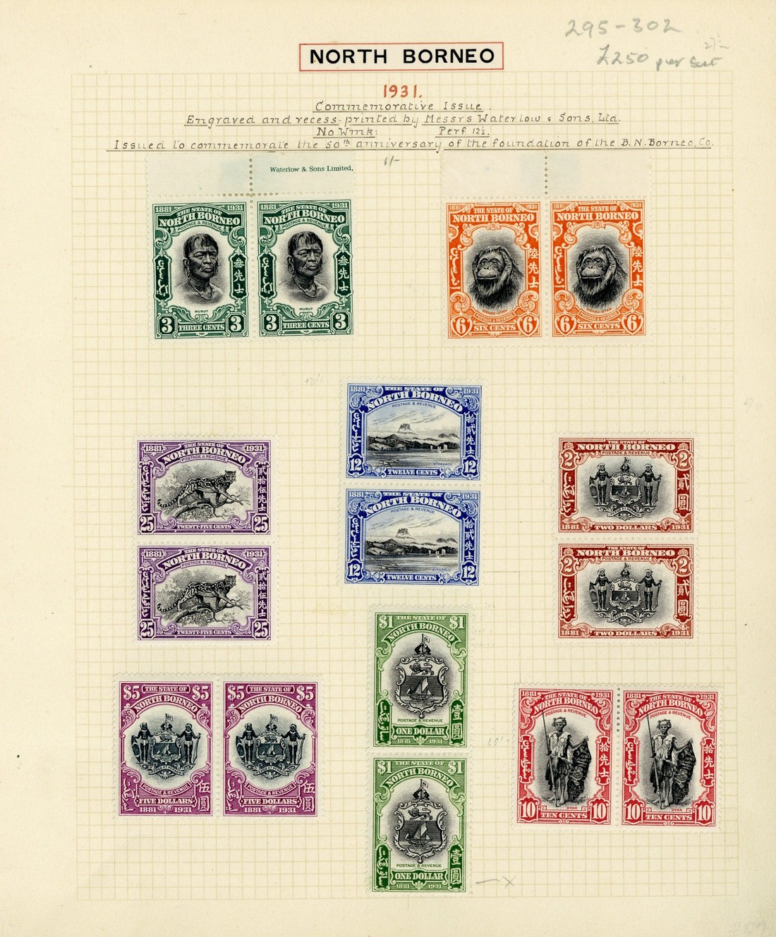 3c. to $5 set of six in pairs (12c. and $1 vertical), fine mint. S.G. 295-302, £600