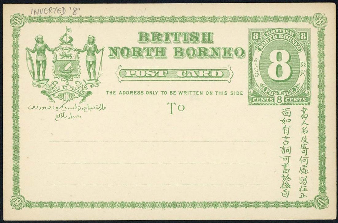 1889 8c. green stationery card showing variety "8" inverted at upper left, fine unused