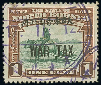 1c. green and red-brown cancelled by part Japanese type c.d.s., fine. S.G. J16, £325. Photo