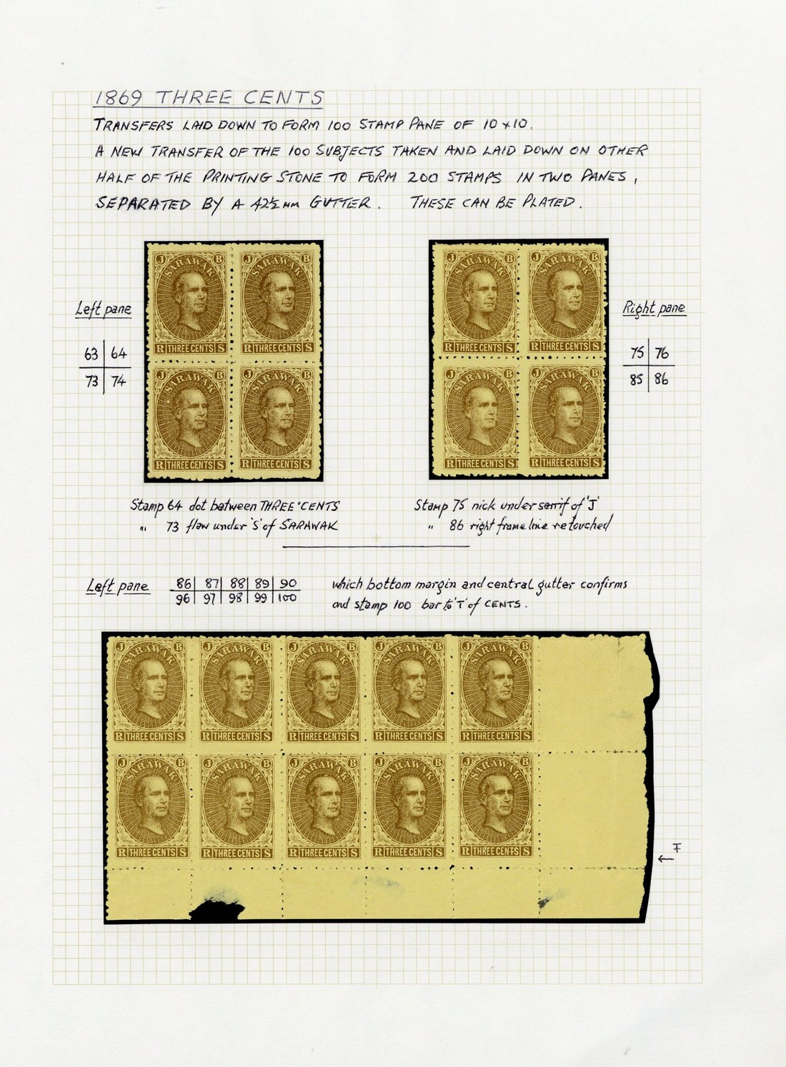 A lower right corner block of ten (5x2), unused with part to large part original gum, some faults in the selvedge, and two blocks of four, both unused with part to large part original gum; fine. S.G. 1, £990