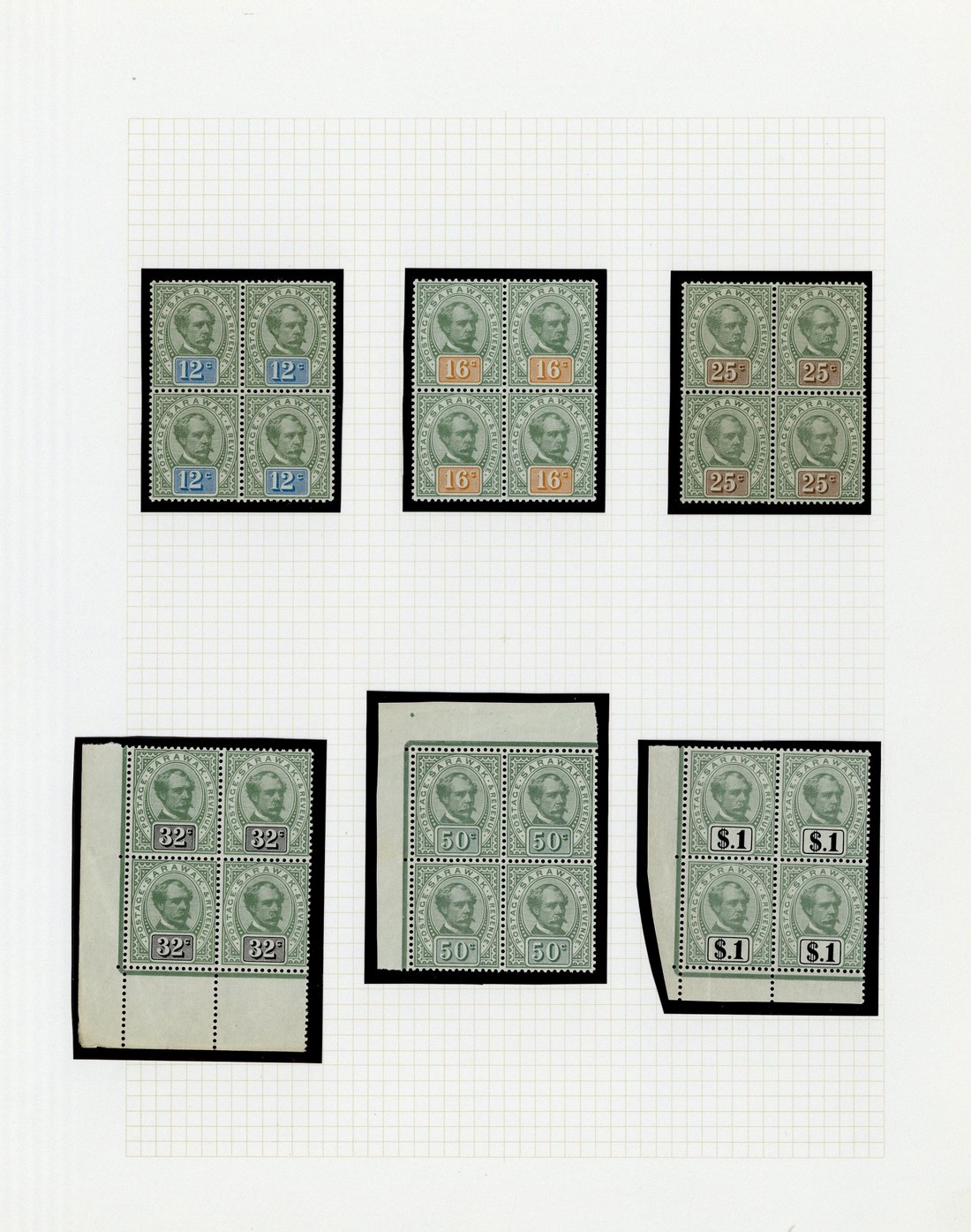 1c., 2c. (2), 3c., 4c., 5c., 8c., 12c., 16c., 25c., 32c., 50c. and $1 blocks of four, 2c. block of twelve (6x2) being bottom two rows of a pane, 3c. lower right corner block of thirty (6x5), 6c. top right corner block of eight (4x2) dated "15 jun 89" in top margin (ex DLR archives), 8c. marginal block of eight (2x4), 10c. marginal block of eighteen and 12c. block of thirty-six from the top of a pane, fine mint. S.G. 8-21, £2600+