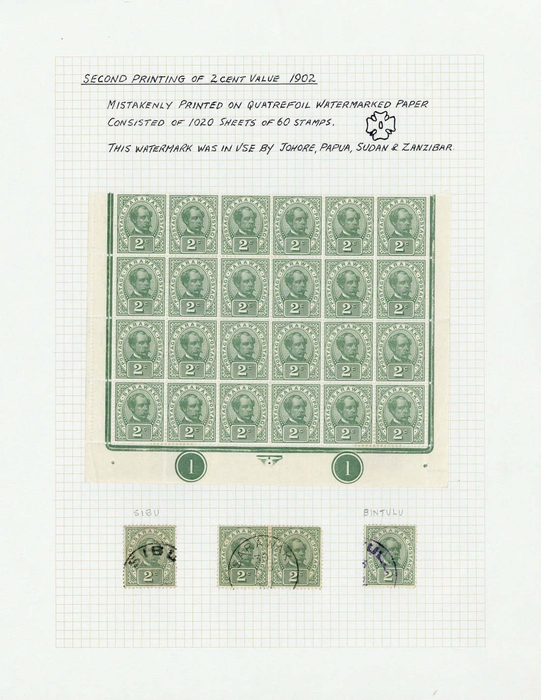 1902 watermark Quatrefoil, 2c. green marginal block of twenty-four (6x4) being the bottom four rows from the right pane, fresh and fine mint; also a used pair and singles (2). S.G. 49, £1400
